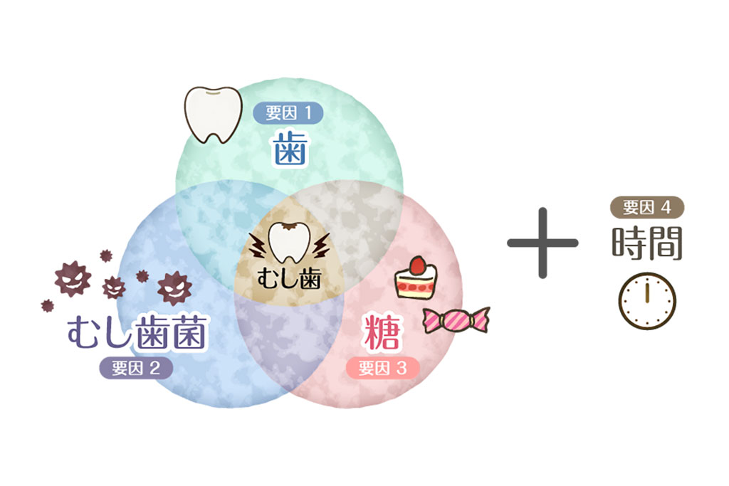 むし歯は多くの方が一度は経験する一般的な疾患ですが、次のようなさまざまな要因が関係しています。見直せる部分は見直して、むし歯を予防しましょう。治療も大切ですが、まずはむし歯にならないことが大切です。